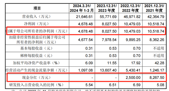 2021年至2023年,先锋精科营收分别为4.24亿元、4.70亿元、5.58亿,同期归母净利润分别为1.052亿元、1.048亿元、8027万元,其中2023年净利润下滑较为明显。