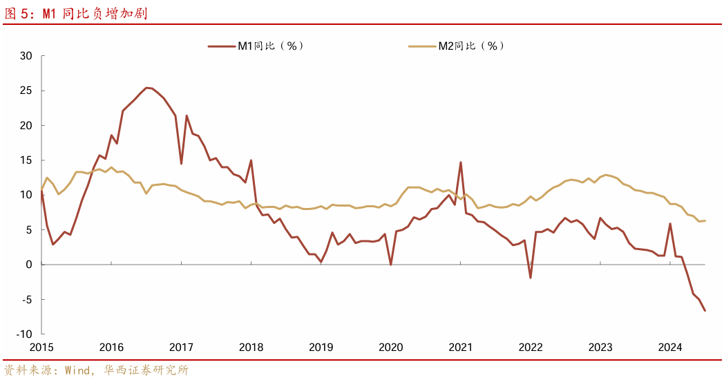 拆分存款结构来看,处于规范化过程中的企业存款仍在超季节性下滑,7月为-17800亿元,为近十年以来同期最高降幅,近四年同期平均值为-13575亿元。不过自4月禁止手工补息以来,新增企业存款的同比降幅在逐渐缩小,4-7月分别为-17317、-6607、-10601、-2500亿元,指向企业存款整改或逐渐接近尾声。企业存款超季节性下滑,也继续拖累M1同比放缓至-6.6%。而新增居民存款-3300亿元,降幅低于过去四年同期平均值(-8067亿元);新增非银存款7500亿元,增幅低于往年同期平均值(9938亿元)。这一轮存款整改,4-7月企业存款减少3.45万亿元,银行理财规模增长3.4万亿元,货币基金(仅披露至6月)规模增长0.7万亿元,企业存款下滑和存款替代类非银金融产品增长基本相当。